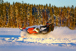 Sen maskinen kommit har vintern här i Norrlands kustland visserligen bjudit på en hel del snö, men väldigt kompakt och hårt före som inte inbju-dit till det puderföre man helst vill köra den här modellen i, men lite bra körning har vi ändå fått in. Föret har som sagt varit rätt hårt men vi har kört de sprillans nya grejerna och fått se vad den går för. Det som självklart är det första som ska snackas om är 9R- 900cc Big Bore Patriot-motorn. På pappret är det sagt 7% mer effekt, upp till 12% mer vridmoment och låg svängmassa för bättre gasrespons jämfört med 850 Patriot. Denna motor är verkligen mitt i prick, har man kört gamla 850 Patriot märker man det på både kraften men framför allt gasresponsen. Gamla 850 Patriot har en utmärkt gasrespons, men nya 9R är nått helt annat. Hur all denna kraft och effekt kommer direkt man trycker in gasen gör den verkligt härlig att köra. Matryx chassit vet vi sedan förut att det är ett väldigt balanserat chassi som gör denna maskin löjligt lättkörd. Kombinationen med allt detta och Khaos 146 gör maskinen extremt kvick och otroligt lekfull om man vill att den ska vara det. Gillar man bus och lek är det här dröm-maskinen.
