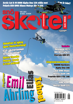 Här ställer vi Arctic Cats kaxiga R-M 8000 Alpha One154 mot den nya och mycket intressanta Polaris 850 RMK Khaos Matryx Slash 155. Nya Matyrx chassiet och kortad bandtunnel mot en racerinriktad Alpha One. Vilka områden trivs dom bäst i och är det något som sticker ut? Vi ger svaren! Sedan har vår tekniske expert Bo Strandberg tittat på vad E10 kan göra i våra skotertankar. Lite retro såklart med Phazern och Rusch. Två mycket aktuella profiler har intervjuats nämligen Emil Ahrling och Elias Ishoel.