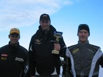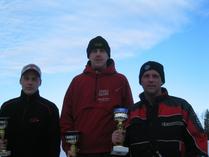 Jörgen Backman, vinterns SM-suverän vinner i Skellefteå. Flankeras av Mac Liljenberg och Jonas Persson