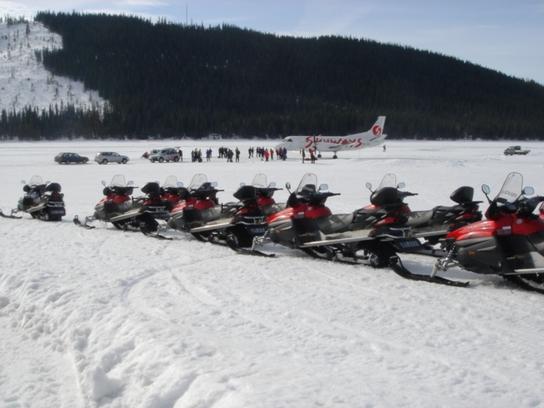 Transporten av passagerare sker med Åre Safaries snöskotergäng.