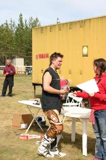 #88 Burken som även kör supermotard mellan varven testade vår värsting Yamaha Raptor 700 Tribal-X design i montern, det såg ut som han gillade den och skulle han prova den på banan skulle han nog le ännu mer!!